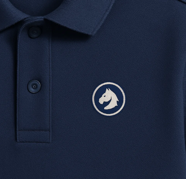 A clean and simple embroidered logo over the chest remains timeless. The focus is on subtlety, premium stitching, and high-quality fabric that speaks for itself.